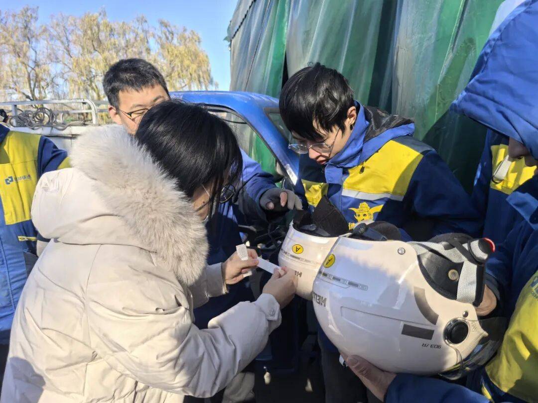 开展“文明出行,‘骑’心护安全”主题活动,为70余名快递、外卖骑手宣讲交通安全知识,发放符合国家3C认证标准的安全头盔。工作人员现场示范正确佩戴方法,确保防护装备发挥实效,以贴心服务守护骑手出行平安。